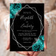 Invitation Teal Blue Silver Floral Black Wedding