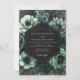 This design evokes a moody and romantic atmosphere with its deep charcoal background. Lush painterly botanicals in shades of teal, seafoam, and sage green create a dramatic effect. The composition is filled with artistic anemones and elegant succulent-like blossoms, establishing an opulent and darkly beautiful theme.