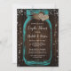 Invitation Teal Mason Jar Wood Rustic Couples Shower
