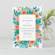 This vibrant design showcases a blissful palette of bold orange poppies and lush teal foliage. The watercolor technique creates a soft yet energetic atmosphere, perfect for a coastal or sunny outdoor wedding. Artistic leaves and blooming petals surround the center, offering a breezy and modern aesthetic.