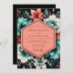 This design features a dramatic and moody botanical arrangement. Large, painterly blooms in shades of vibrant teal and soft coral pop against a dark, nocturnal background. Delicate ivory flowers and deep green leaves add depth and contrast to this artistic composition, creating a sense of romantic elegance.