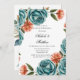 Invitation Teal Roses and Orange Floral Wedding Celebration