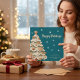 Celebrate the warmth and sweetness of the holiday season with this charming Gingerbread Christmas Tree Holiday Card. This delightful design features a whimsical watercolor illustration of a festive tree adorned with gingerbread cookies, candy canes, and delicate snowflakes against a rich teal background. The elegant script 'Happy Holidays' adds a touch of sophistication, making it perfect for sending season's greetings to family and friends. The card also includes space for a personal message, allowing you to add your own heartfelt wishes. Share the joy and magic of Christmas with loved ones near and far with this unique and memorable card.
