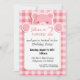 L'invitation à la fête Anniversaire de enfant présente un mignon ours en peluche rose contre en vichy plaid rose et blanc. Utilisez le bouton CUSTOMISER l'informatique pour ajouter du texte. Pour toute question ou demande, communiquez avec le DESIGNER :cheryl@cheryldanielsart.com. Produits de la partie correspondante disponibles. "Teddy Bear En vichy Paid" de Cheryl Daniels © 2014.
