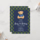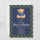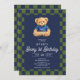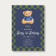 Invitation Teddy Beary 1st Birthday Checkboard Blue Green