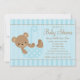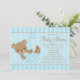 Ce dessin présente un joli ours en peluche assis à l'intérieur d'un parapluie bleu de polkadot. Le arrière - plan est rayé bleu clair. Graphiques ©Cocoa Studio