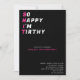 Cette invitation d'anniversaire tendance, amusante et humoristique pour les 30 ans est parfaite pour la femme qui veut célébrer son anniversaire avec un peu d'humour. Le design présente un titre gras et rose qui indique "Tellement heureuse d'avoir trente ans" de manière amusante. Cette invitation chic et amusante est parfaite pour une femme qui veut célébrer son anniversaire avec style et personnalité. La palette de couleurs rose et blanc est moderne et élégante, et la police de caractères et la typographie ludiques ajoutent une touche de fantaisie.