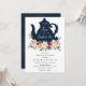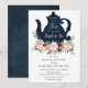 Il est temps de prendre le thé avec la mariée. Célébrez la mariée d'être avec une douche à thé. Doté d'une théière bleu marine et de fleurs bourguignonnes et roses avec une végétation aquarelle. Customisez avec vos informations pour la mariée. Cliquez sur "cliquer pour customiser plus loin" pour modifier le style, la taille ou la couleur de la police.