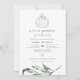 Cette invitation baby shower présente une citrouille d'aquarelle blanche à la floraison blanche bohème et un écorce de verdure au fond. Modifiez tous les textes pour qu'ils correspondent à vos besoins.