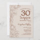 Floral Terracotta Boho Burnt Orange Surprise 30e anniversaire de fête Invitation. Design moderne minimaliste avec accents botaniques et police de script de typographie. Carte invitation florale simple parfaite pour une célébration anniversaire surprise femme élégante. Peut être customisé à n'importe quel âge.