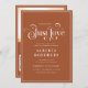 Surprenez vos amis et votre famille avec ces invitations rétro cool, avec une calligraphie rétro, un fond en terre cuite bohème, une photo personnalisée, un code QR et le texte de votre choix. Ajoutez facilement vos propres informations en cliquant sur l'option "personnaliser".
