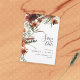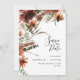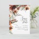 Cette invitation de mariage élégante et naturelle "save the date" présente des fleurs rustiques à l'aquarelle en terre cuite et rouge foncé, des feuilles sèches et des brindilles. Design moderne et tendance.