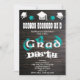 Une invitation ludique et colorée pour une soirée Graduation. Super pour les garçons et les filles. Seul le texte "Grad" sur l'arrière - plan est flou. Le texte avant reste clair pour une meilleure lecture. Les couleurs utilisées sont turquoises et blanches. L'arrière - plan est un classique bois brun rustique. Customisez avec vos informations.