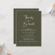 Mark the beginning of your forever with elegance using our contemporary olive sage green theme, wedding elopement celebration invitation card, "Thanks a brunch". Perfect for couples extending their joyous occasion, this invitation exudes sophistication with a hint of playfulness, setting the stage for a memorable event. Adorned with a timeless modern script design theme, it adds a touch of refined charm to your festivities. Crafted by TeeshaDerrick, this invitation promises to beautifully capture your love story.
