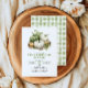 Invitation vos proches à se réunir autour de la table avec cette élégante invitation à dîner Thanksgiving, conçue pour capturer la chaleur et le charme de la saison d'automne. La pièce maîtresse de l'invitation est un agencement magnifiquement illustré de citrouilles aux teintes douces et naturelles de vert, blanc et orange, entourés de verdure et d'éléments rustiques. Cette exposition automnale incarne parfaitement l'esprit de Thanksgiving, créant une atmosphère accueillante et festive. Le texte "Thanksgiving Dinner" est entièrement modifiable, cette invitation est donc adaptée à toute célébration de Thanksgiving. En dessous, les détails essentiels de l'événement, y compris la date, l'heure et l'emplacement, sont clairement présentés dans un format facile à lire, assurant à vos invités tous les renseignements dont ils ont besoin. Les accents verts du texte s'harmonisent avec la palette de couleurs naturelles de l'illustration citrouille, améliorant ainsi la conception globale. Son design raffiné et son souci du détail reflètent l'attention et le soin que vous accordez à la planification de cette occasion spéciale. L'arrière est décoré d'une subtile motif de couleur verte et blanche en vichy, ajoutant une touche rustique mais raffinée à l'invitation. Que vous soyez l'hôte d'un grand rassemblement familial ou d'un dîner intime avec des amis proches, cette invitation donne le ton parfait pour votre fête de Thanksgiving. Invitation vos invités dans le style et leur faire savoir combien vous avez hâte de partager ce séjour spécial avec eux, entouré par le confort et la joie de la bonne compagnie et de la nourriture délicieuse. Disponible sous forme de cartes imprimées ou en téléchargement numérique instantané.