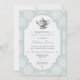 Célébrez une personne ou un couple spécial avec un traditionnel thé party britannique. Le fond de l'invitation est une image de papier bleu vintage ornée de rosettes blanches. Le cadre avec un centre en papier blanc vintage présente une illustration vintage d'une théière ornée. Suffisamment polyvalent pour être utilisé pour une douche de mariage ou de couple, une baby shower, un anniversaire, un brunch de mariage, ou un déjeuner spécial. Disponible en couleurs alternatives avec des produits assortis.