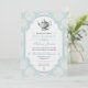 Célébrez une personne ou un couple spécial avec un goûter traditionnel britannique. Le fond de l'invitation est une image de papier bleu vintage ornée de rosettes blanches. Le cadre avec un centre en papier blanc vintage présente une illustration vintage d'une théière ornée. Suffisamment polyvalent pour être utilisé pour une douche de mariée ou de couple, une baby shower, un anniversaire, un brunch de mariage ou un déjeuner spécial. Disponible en couleurs alternatives avec des produits assortis.