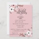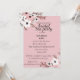 Cette image montre une invitation à une fête de thé de mariage avec un fond rose et un design floral. L'invitation est pour une fête de thé de mariage en l'honneur d'Annabella Ford. L'événement est prévu pour le 10 juillet à deux heures de l'après-midi au restaurant The Pavillion, situé au 2385 rue Asteron, Jackson, MI.