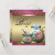 Cartons d'invitation élégants rose et or pour un thé de mariage. Personnalisez le recto et le verso pour votre événement.
