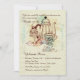 Une invitation au thé et aux desserts au charme "Old World". Le arrière - plan couleur crème est orné de filigranes bleues et de pois subtils et comprend une théière, une tasse élégante et un dessert succulent.