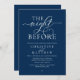 "The Night Before". Modern romantic minimalist Classy design themed, wedding rehearsal dinner invitation card in navy blue theme. Planning a wedding Rehearsal Dinner celebration with the to-be Bride and to-be Groom, before their BIG day? Invite the guests with this perfect Wedding Rehearsal Dinner Invitation Card. Easily edit it with your rehearsal dinner invitation details.