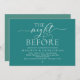 Celebrate the magical evening before “I do” with this sophisticated and romantic teal green rehearsal dinner invitation — perfect for honoring the couple as they prepare for their big day. Design Highlights, Modern minimalist aesthetic with bold serif typography and flowing script, “The Night Before” headline sets a dreamy, timeless tone, Clean layout with ample space for all essential details (date, time, venue, RSVP info) and Crisp black text on white background — classic, chic, and effortlessly elegant. Perfect for Intimate rehearsal dinners, Pre-wedding celebrations with family and close friends and Couples who love modern calligraphy and understated luxury.