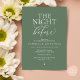 Celebrate the magical evening before “I do” with this sophisticated and romantic rehearsal dinner invitation — perfect for honoring the couple as they prepare for their big day, in sage green. Design Highlights, Modern minimalist aesthetic with bold serif typography and flowing script, “The Night Before” headline sets a dreamy, timeless tone, Clean layout with ample space for all essential details (date, time, venue, RSVP info) and Crisp black text on white background — classic, chic, and effortlessly elegant. Perfect for Intimate rehearsal dinners, Pre-wedding celebrations with family and close friends and Couples who love modern calligraphy and understated luxury. Fully customisable on Zazzle — personalize names, dates, locations, and even add your own colors or fonts. Print as flat cards, folded invitations, or digital downloads. Let your guests know this is more than just dinner — it’s the night before forever. Order now and set the tone for an unforgettable celebration!