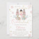 Personalize this sweet pink winter onederland first birthday party invitation with your party details easily and quickly, simply press the customize it button to further re-arrange and format the style and placement of the text. Featuring whimsical characters from the Nutcracker in sweet pastel colors. Perfect for your little snowflake's first birthday! Matching items available in store! (c) The Happy Cat Studio.