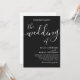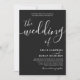 A sophisticated black wedding invitation featuring elegant script typography on a dramatic dark background. The minimalist design highlights the couple’s names with graceful calligraphy, creating a timeless and romantic aesthetic perfect for modern, formal, or evening weddings.