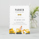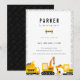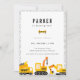 Thème de camions de construction mignons, invitation à une fête d'anniversaire.
