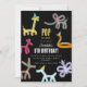 Un design de fête d'enfants en ballons multicolores mignon. Un design amusant avec des illustrations dessinées à la main d'animaux en ballons portant des chapeaux de fête. Un design de thème de fête d'animaux en ballons pour enfants parfait pour les anniversaires, la décoration de chambre et les cadeaux personnalisés.