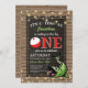 Invitations de fête d'anniversaire thème pêche pour célébrer votre enfant qui en fait un ! Cet invitation dispose d'un arrière - plan en bois rustique, d'un centre de tableau, d'un poisson vert mignon, d'un bobber de pêche et d'un modèle moderne de célébration d'anniversaire, facile à personnaliser.
