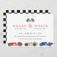 Invitation à une fête d'anniversaire commune avec un thème de voiture de course rétro mignon.