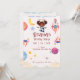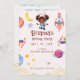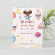 Cette carte personnalisable présente une fille à la peau brune en tenue d'astronaute, ainsi que des éléments spatiaux et célestes. Le design aquarelle comprend des planètes, des étoiles, des nuages et une fusée ! Convient aux anniversaires ou à d'autres événements ayant des thèmes d'exploration spatiale.