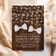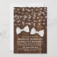 Caractérisé par un fond en bois rustique, des guirlandes lumineuses romantiques, deux nœuds papillon de marié blancs classiques et vos coordonnées de mariage.