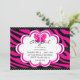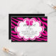 Cette invitation à la fête d'anniversaire présente un tigre violet et noir et des pois noirs et blancs.