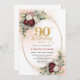 Celebrate an unforgettable milestone with this 90th birthday invitation, beautifully designed in a boho and bohemian style featuring soft watercolor blush and burgundy florals accented by an elegant gold frame. This refined design combines warmth, sophistication, and timeless charm—perfect for honoring a very special occasion.