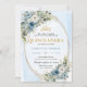 Ideal for classic, modern, garden, or elegant Quinceañera themes, this invitation combines delicate blue hues with warm gold details to achieve a look that feels both sophisticated and youthful. The greenery and eucalyptus bring freshness and balance, while the gold accents add just the right amount of sparkle for a meaningful 15th birthday celebration. Whether you are planning a formal Quinceañera, a traditional fiesta, or an intimate family gathering, this invitation sets a beautiful and memorable tone.