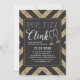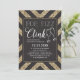 Tintement de sifflement de bruit. Invitation de fête de la partie de nouvelle année comportant un motif audacieux de parties scintillantes d'or. Notez svp, les parties scintillantes sont faux et seront imprimées à plat.
