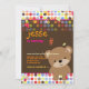 Ours en peluche et invitations colorées à la fête d'anniversaire des pois.
