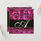 Invitation TISSU DAMASSÉ NOIR ROSE FUCHSIA MONOGRAMME , blanc