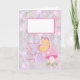 Invitation to a Baby naming ceremony. The design is a pink swirly background, with a place to add a picture of the parents holding the baby, or just the baby. The card also has a pretty illustrated mushroom and a butterfly. Thanks to the Hungryjpeg for some of the elements in the design.