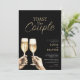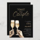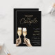 Celebrate the joyous occasion of love and commitment with this elegant engagement announcement. Featuring a sophisticated 'Toast The Couple' script in shimmering gold against a classic black background, this design evokes a sense of celebration and luxury. The watercolor illustration of champagne flutes held high adds a personal and festive touch, perfect for announcing your engagement party or reception. Let your guests know they are invited to share in your happiness with this exquisite and memorable announcement.