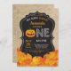 Invitation d'anniversaire de citrouille de Halloween ?ère avec l'arrière - plan d'orange et de toile de jute. Premier anniversaire. Partie d'anniversaire de garçon ou de fille. Pour davantage de personnalisation, cliquez sur svp la "personnaliser il" bouton et utilisez notre outil de conception pour modifier ce modèle.