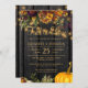Belles fleurs automnales rouillées et bordeaux foncé et bordures citrouilles avec cordes de lumières scintillantes dorées sur un arrière - plan de grange brun foncé faisant une élégante invitation de fiançailles FALL IN LOVE avec une écriture manuscrite manuscrite script de typographie or. ++++++++++ Facile à personnaliser avec vos détails ! ++++++++++++++++++++ Convient pour automne traditionnel rustique | pays | ferme | fiançailles de jardin extérieur ou autre avant les mariages / barbecues.