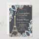 Invitation Tour Eiffel Or, Fleurs, Quinceañera Noir