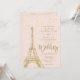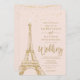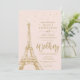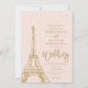 Invitation Tour Eiffel parties scintillant dorée mariage rose