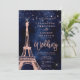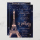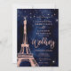Invitation Tour Eiffel rose or parties scintillant marine ble