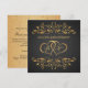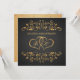 Carton d'invitation pour 50 ans de mariage avec des tournants dorés feuillus et des cœurs unis sur fond noir. Au verso - effet doré pois, (peut être supprimé). Vous pouvez ajuster le texte selon vos besoins.