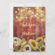 Un Faire-part de mariage de tournesol rustique avec des lumières à cordes ridées qui est parfait pour votre mariage à thème en bois d'écorce! Doté de tournesols jaunes et blancs avec un arrière - plan en platine de grange rouge. Des lumières à cordes pendantes ornent le dessus de cette carte tandis que des polices de script élégantes ajoutent une touche de charme de pays. Vous pouvez facilement modifier ce modèle pour le rendre adapté à vos besoins.